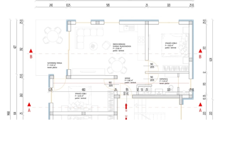 •Kuhinja, blagovaonica i dnevni boravak (23,46m²)