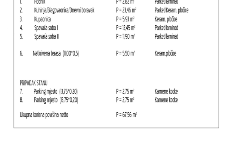 •Ukupna korisna površina s terasom, i parkingom: 67,56 m²