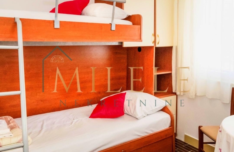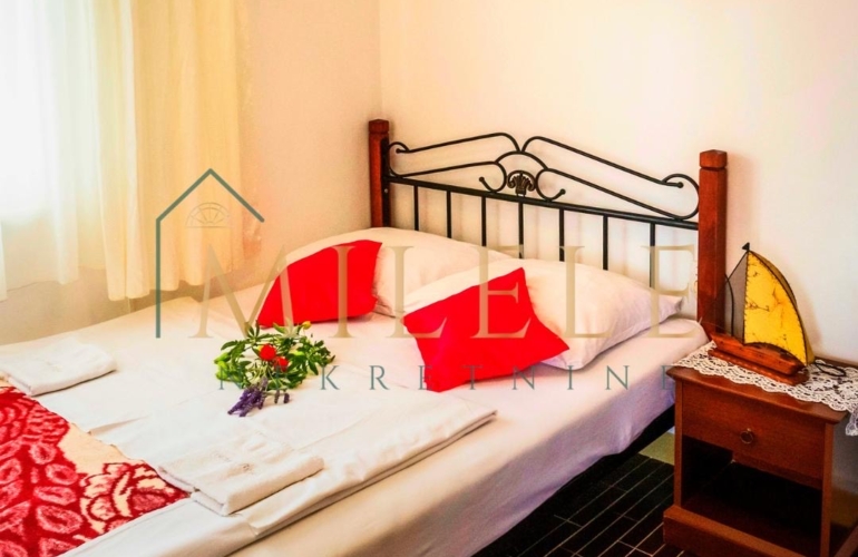 Kuća je klasično građena, samostojeća, s tri odvojene stambene jedinice i ravnim krovom. Nalazi se u slijepoj ulici bez prometa – idealno za odmor, a istovremeno uhodan turistički posao s mogućnošću proširenja (1-2 dodatna apartmana prema planu).