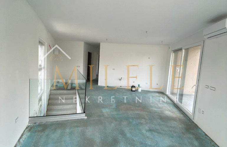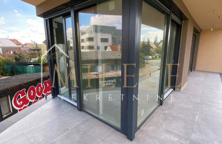 Zgrada je novogradnja modernog dizajna, a sam stan odlikuju kvalitetni materijali – parket u sobama i keramika u kupaonicama. Tlocrt je pažljivo osmišljen kako bi maksimalno iskoristio prirodnu svjetlost i pružio udobnost.