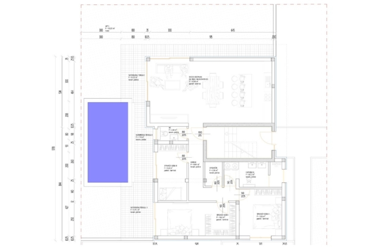 •Ukupna korisna površina s terasama, vrtom i parkingom: 128,23 m²