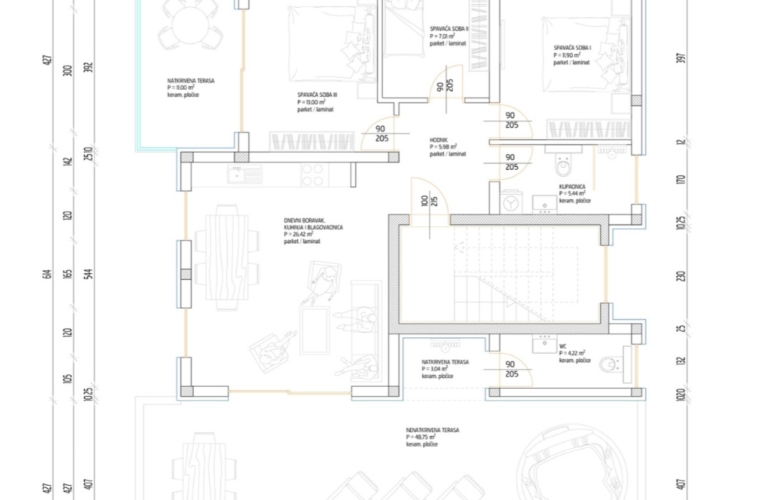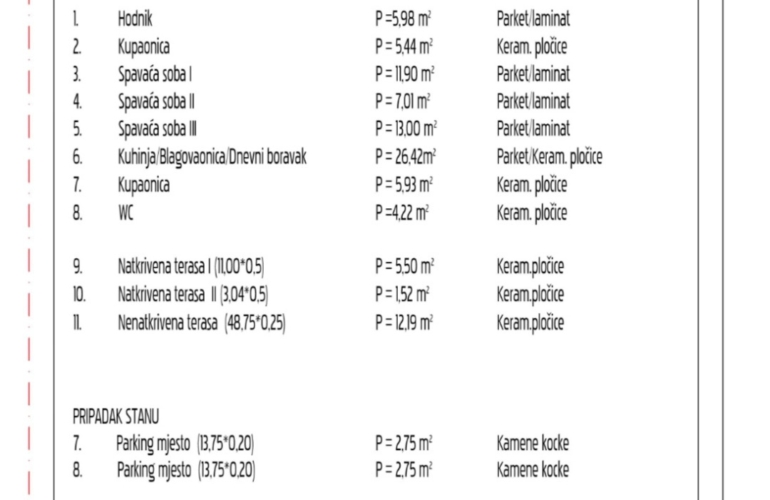 •Ukupna korisna površina s terasom, i parkingom: 104,61 m²