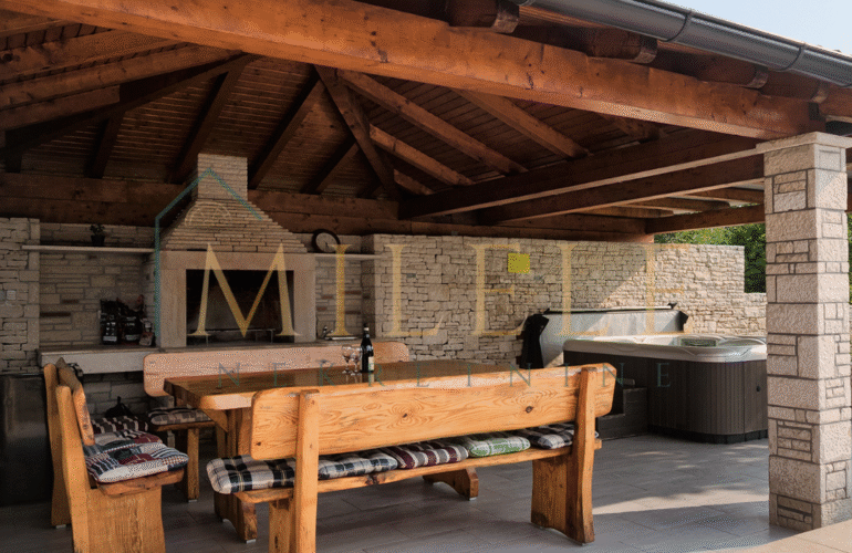 – Natkrivena terasa (36 m²) s pogledom na bazen